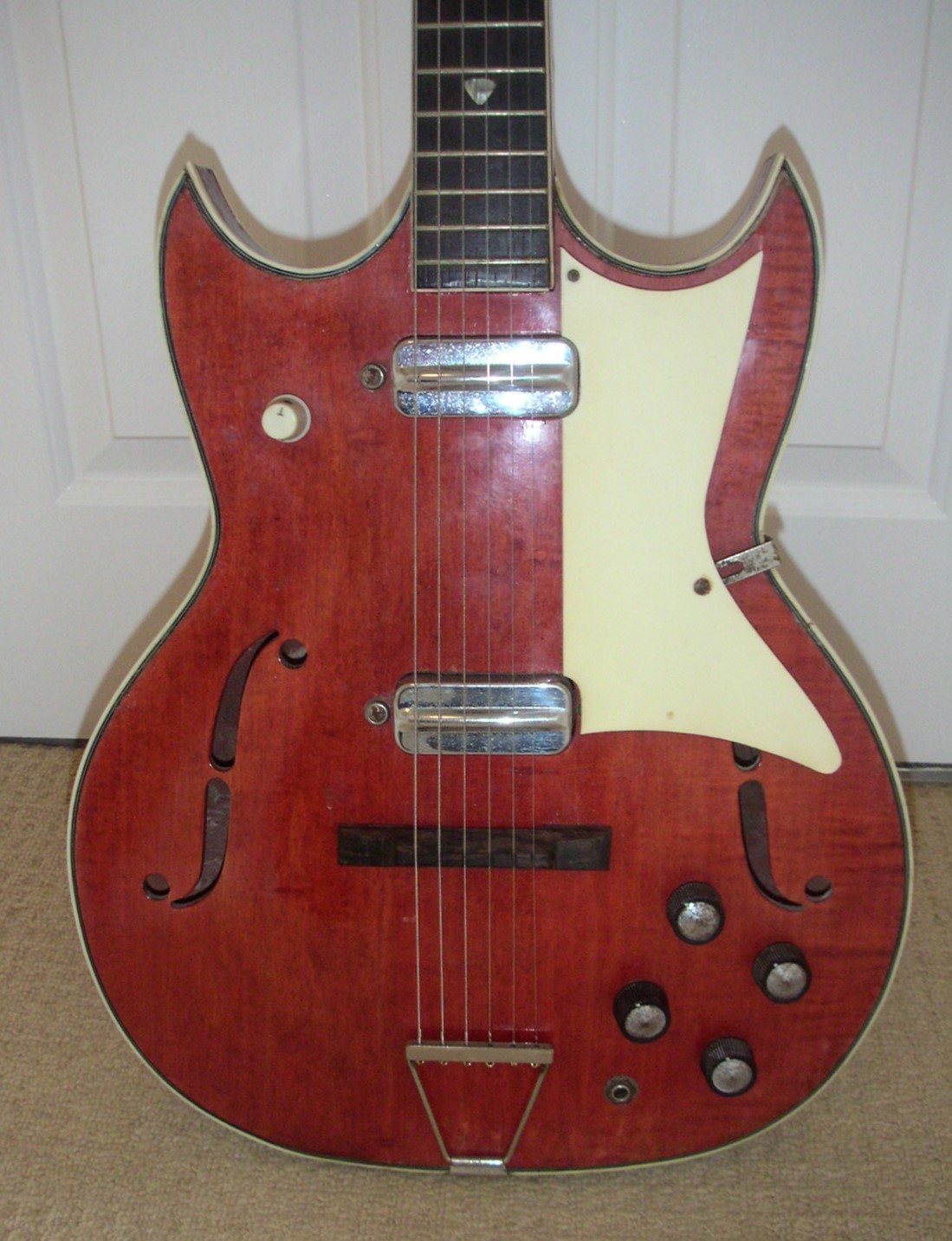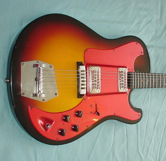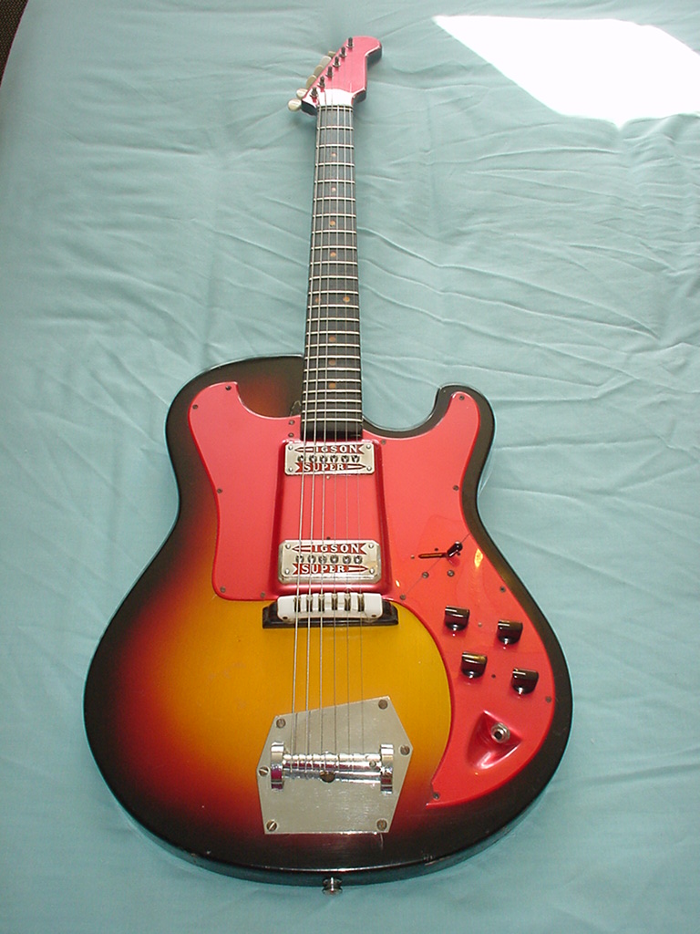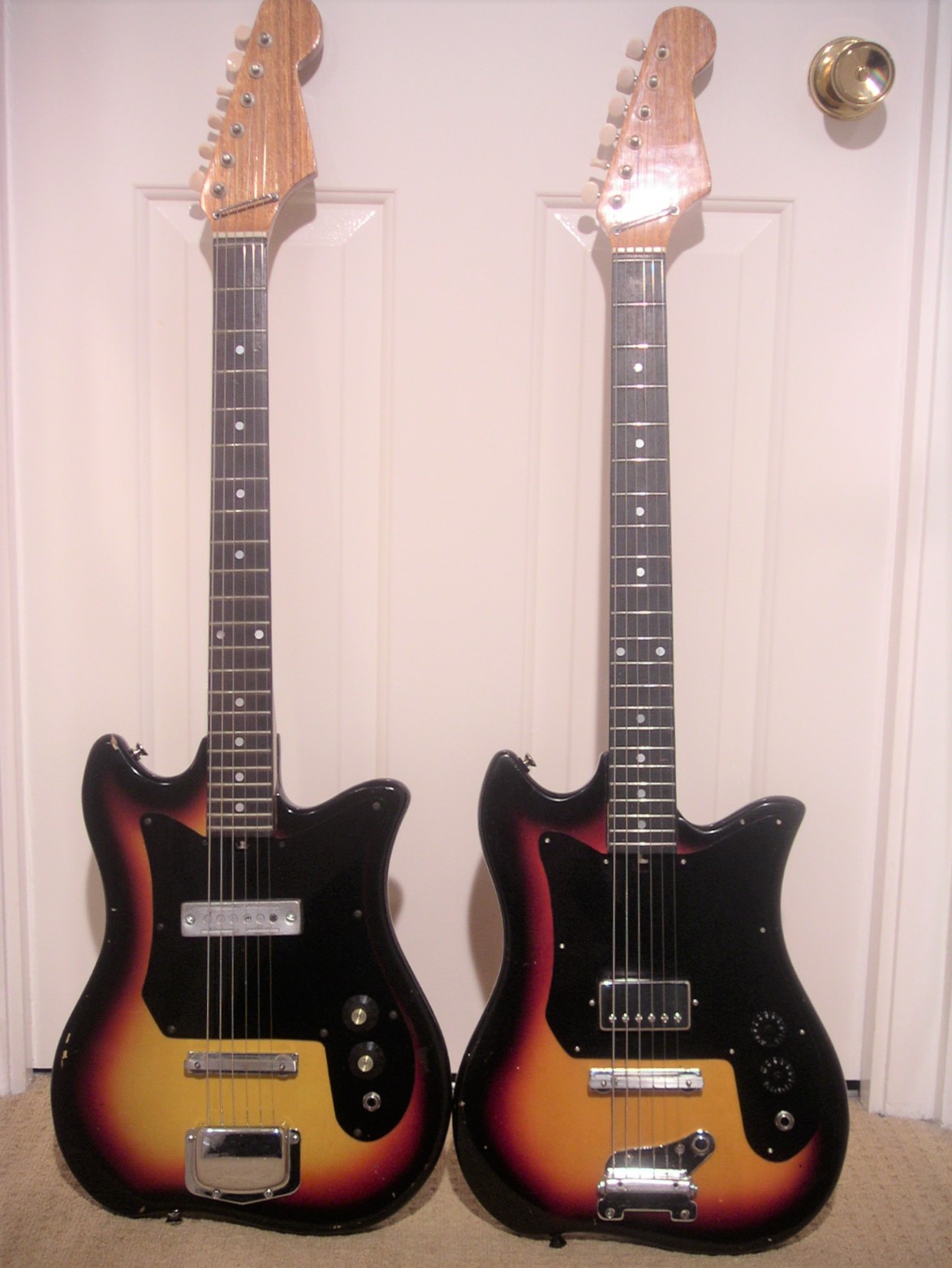 Two Kay / Teisco ‘Tulip’ guitars. I found these lurking in the back of a junk shop and bought them for nothing. I had to buy a few parts from the internet, but they turned out great, especially the one with the Gibson humbucker in it