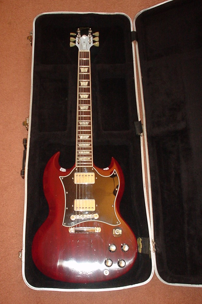 This is a 1970′ Shaftesbury (I think) copy of a Gibson SG. Believe me when I tell you that this was the very best SG I have ever owned or played. It literally blew away all of the original Gibsons SG’s above