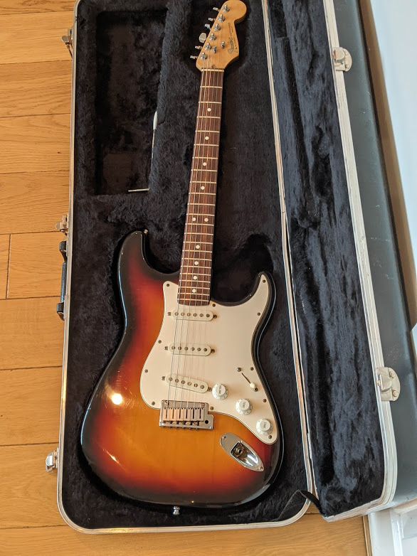 A lovely 3 colour sunburst Fender Stratocaster. from 1991. Absolutely fantastic guitar but I just never used it much so it had to go.
